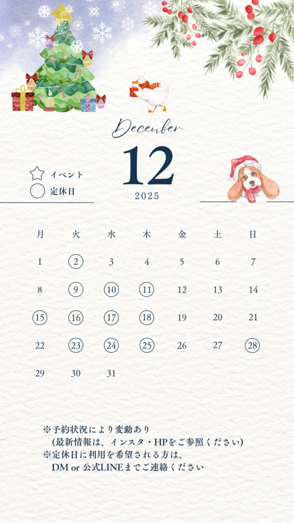 詳細は下記のカレンダー画像をご確認ください📅